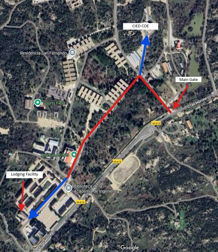 The Counter Improvised Explosive Devices Centre of Excellence offers on-site accommodation featuring 60 single rooms, along with shared amenities including a living room, dining area, outdoor garden, terraces, and a self-service laundry facility.